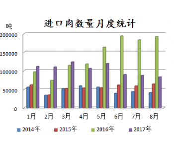 据最新海关数据统计,8月进口猪肉数量达83552吨,同比下降56.6%,环比下降4.65%;1-8月进口总数量达833510吨,较去年同期下降26.