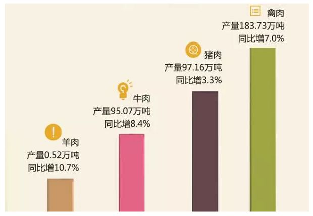 羊肉(包括羔羊肉)产量0.52万吨,同比增10.7%。