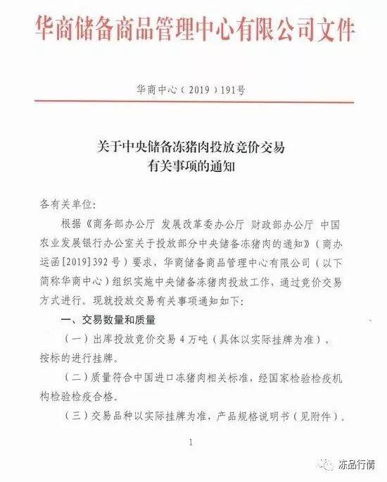 12月10日,华储网发布中央储备冻猪肉投放竞价交易有关事项的通知,将出库投放竞价交易4万吨。据统计,这是今年投放的第四批储备肉。
