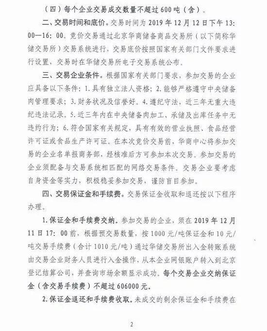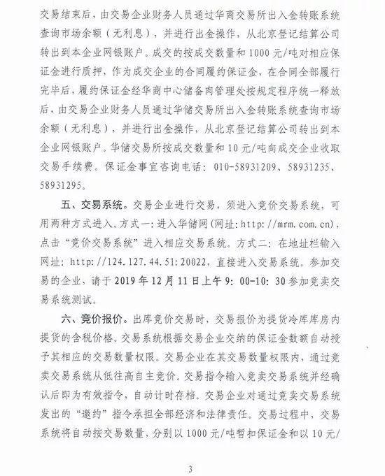 在《通知》中注意到,在12月12日竞价成交后,成交企业不得借机囤积,必须交易成交后一个月内将储备肉售卖给终端用户。
