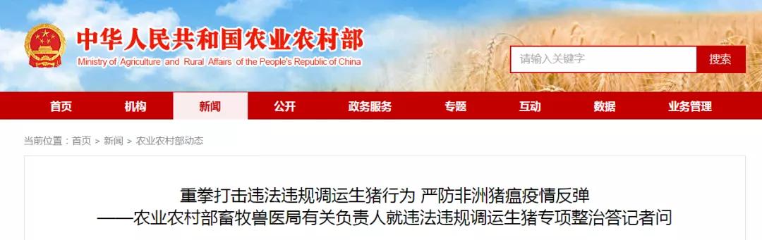 要求各地充分认识非洲猪瘟防控工作重要性、复杂性和艰巨性,压紧压实防控责任,迅速行动,按照专项整治部署要求,严把饲养“源头”、生猪出栏、流通运输、到达接收、信息对接、监督执法“六关”,确保专项整治行动取得实效。