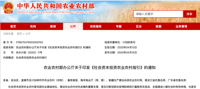 为激发社会资本投资活力,更好满足乡村振兴多样化投融资需求,助力粮食、生猪等重要农产品稳产保供和农民收入持续稳定增长,近日,农业农村部发布了《社会资本投资农业农村指引》。