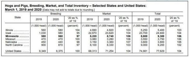 据美国农业部国家农业数据中心今年3月统计,明尼苏达州目前肉猪存量930万头,仅次于艾奥瓦州,较上一季度降低1%,同比增长6%,其中874万头用于供应市场。