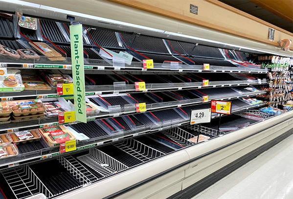 3月初,美国超市货架上的食品被抢购一空 图自:社交媒体