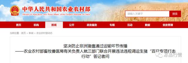 为有效控制非洲猪瘟跨区域传播风险,农业农村部从4月初开始,已经开展了为期60天的违法违规调运生猪专项整治行动,取得了阶段性的积极成效。这次农业农村部、交通运输部、公安部决定共同行动,把专项整治升级为“百日专项打击行动”,就是要通过更加广泛深入地查办违法违规调运行为,更加有力地防控风险。通过开展这次“百日专项打击行动”,将推动在全国范围内建立起多部门协作的生猪调运监管工作机制,织密以省界、重要枢纽及县域内高速公路出入口为重点的监管网络,健全固定站点检查与流动巡查相结合的监管模式,形成有效防范非洲猪瘟等重大动物疫病通过运输环节传播的长效机制。