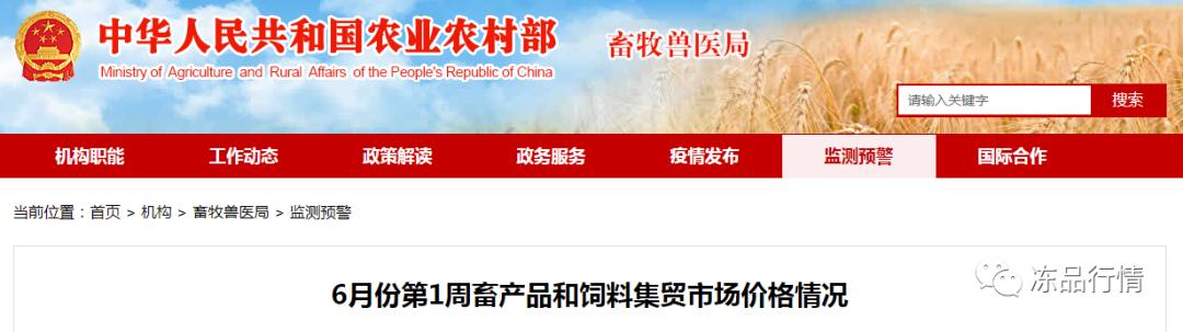 据对全国500个县集贸市场的定点监测,6月份第1周(采集日为6月3日)家禽产品、羊肉、豆粕、育肥猪配合饲料、肉鸡配合饲料价格下降,生猪产品价格上涨,牛肉、生鲜乳、玉米、蛋鸡配合饲料价格持平。