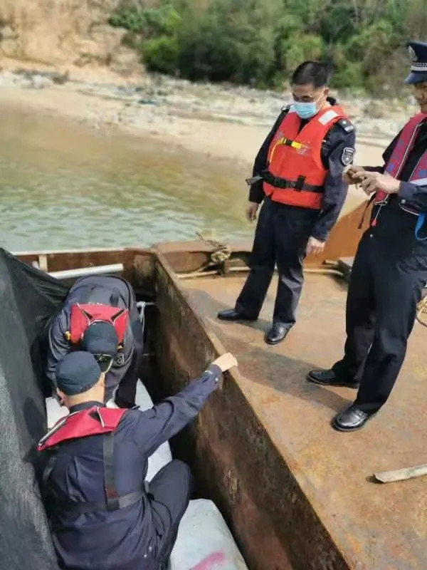 执法人员接到群众举报称,在黄茅岛西湾海域有一艘长约20米、宽约5米的可疑船只涉嫌走私冻品。接报后,万山大队立即派出3名执法人员联合万山区东澳派出所2名公安人员驾乘中国渔政44174艇火速前往。