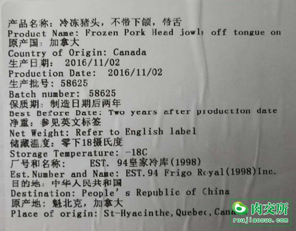加拿大94厂猪头现货