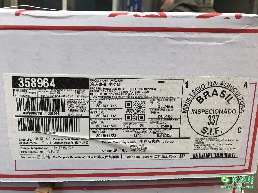 巴西337牛肋条,真空热缩包装!