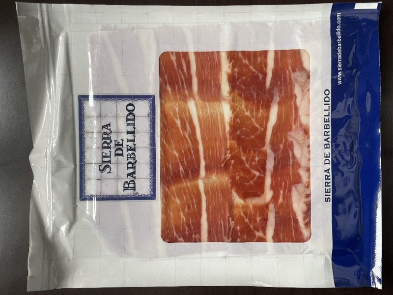 西班牙原包装空运进口,伊比利亚黑猪火腿绿标,80克切片装,批发单价120元/包,50包起批,运费自理。