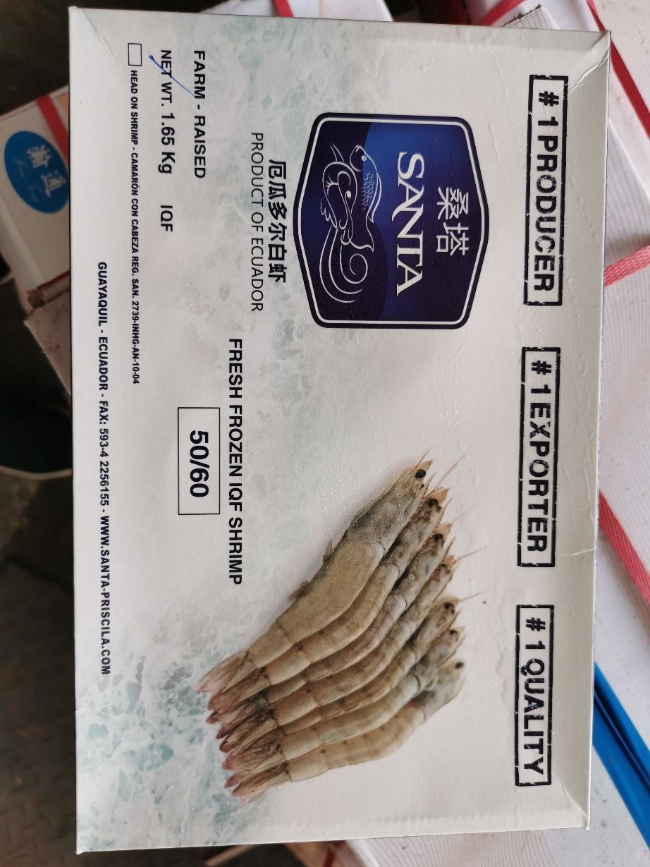 桑塔厄瓜多尔白虾 50-60 每盒净重1.65kg 420一件,一件6盒