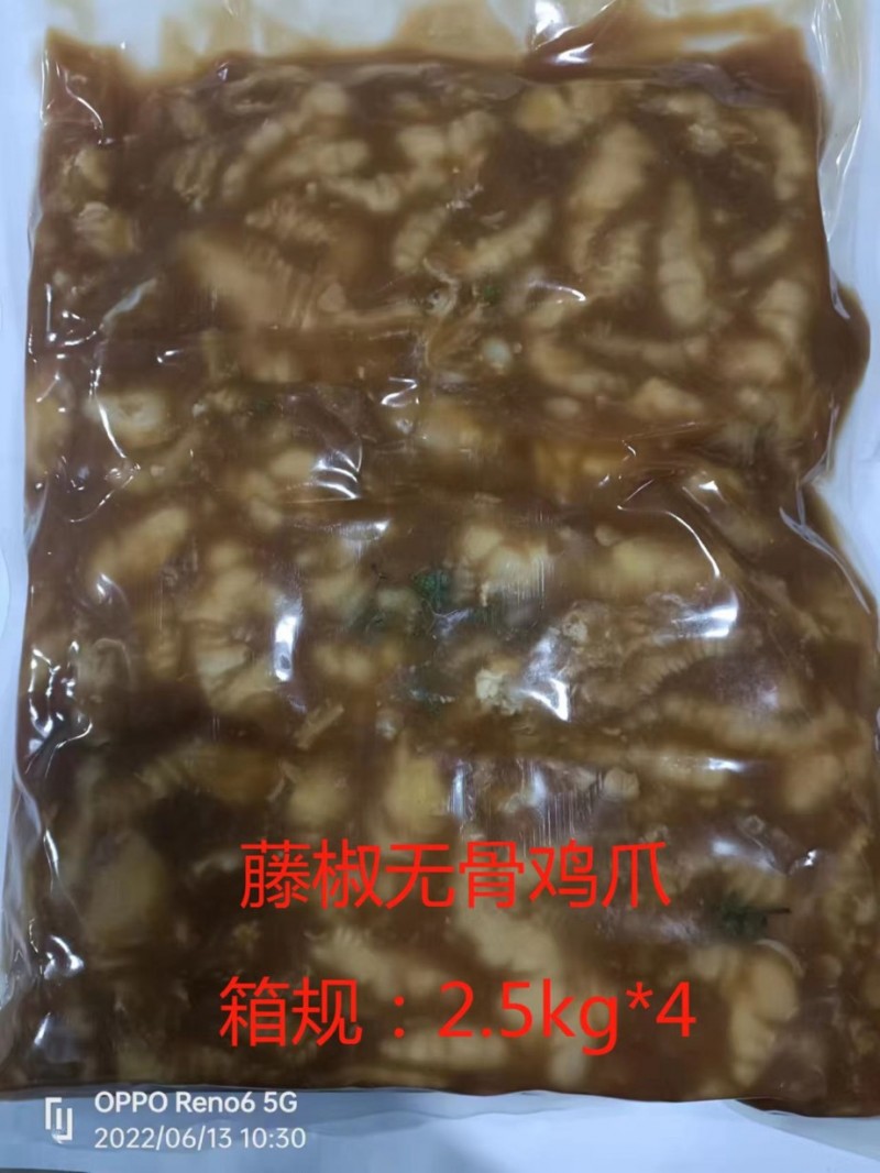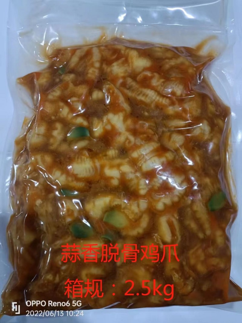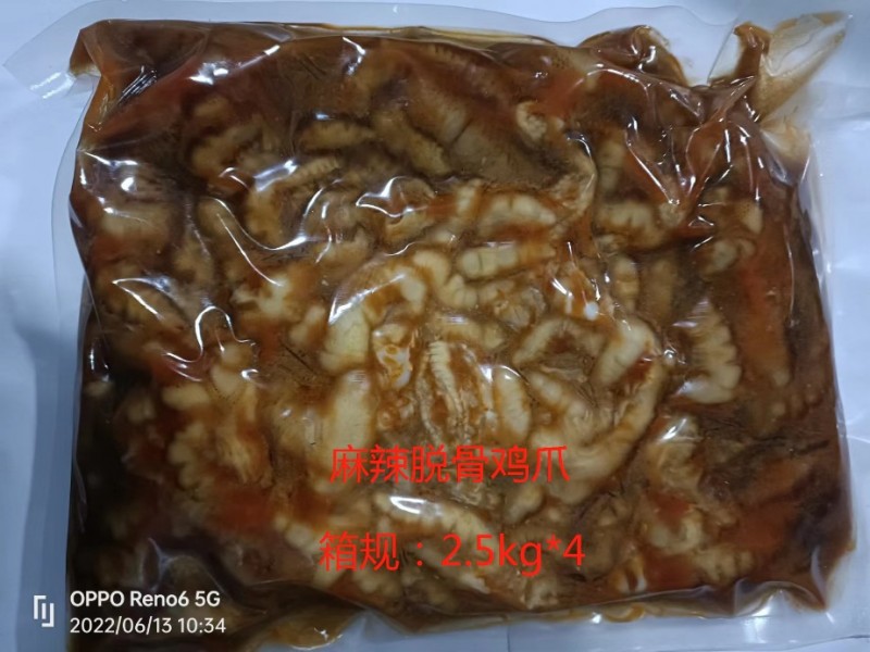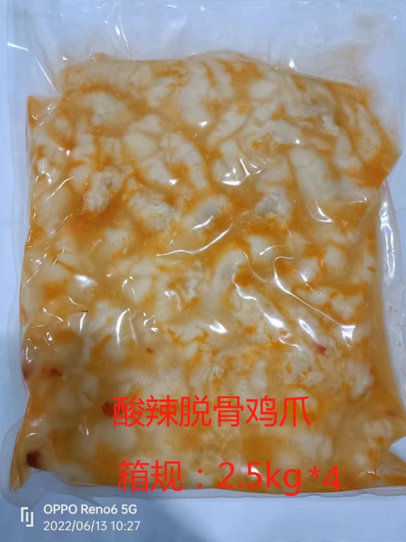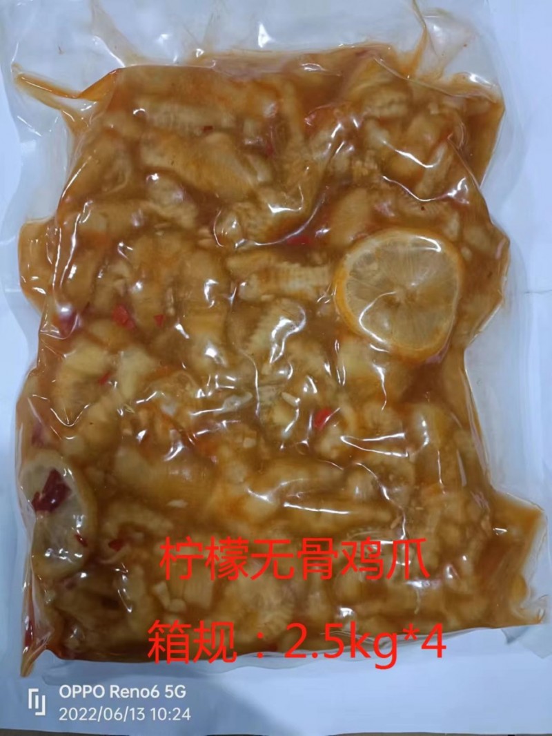去骨凤爪熟食 现在有柠檬、藤椒、蒜香、酸辣、麻辣五个口味,每袋2.5公斤,每箱4袋10公斤,每吨48000元 有需要的朋友联系我