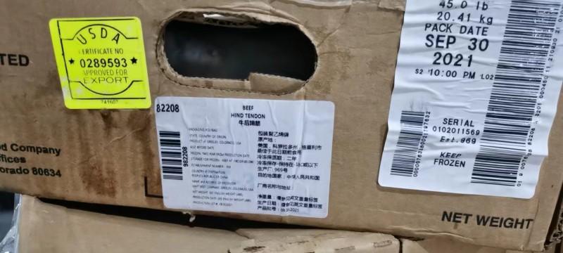 JBS美国牛蹄筋,厂号:969,四证齐全,上海现货。