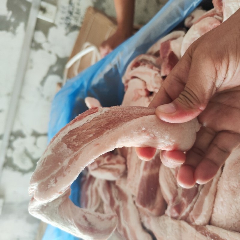 去皮五花肉条,颜色好,花层漂亮