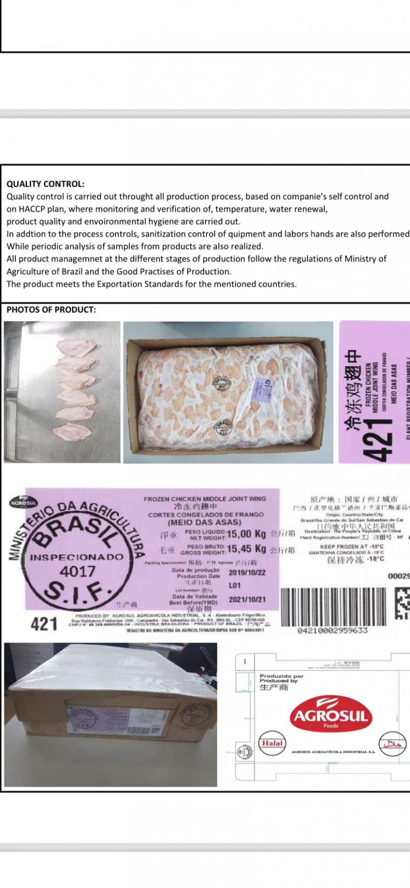 新到上海港巴西4017厂中翅3柜,节后清关出来。有意向的老板联系我,微信cwj74321