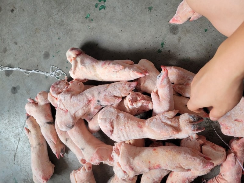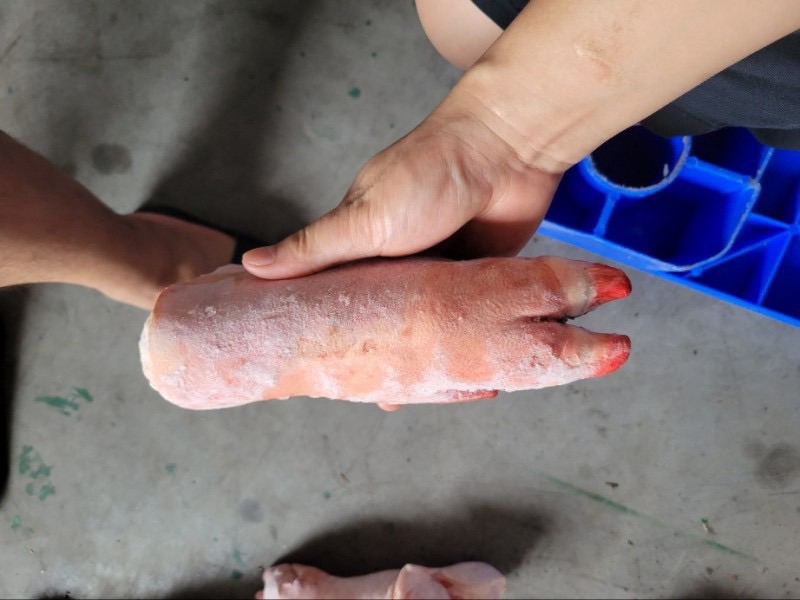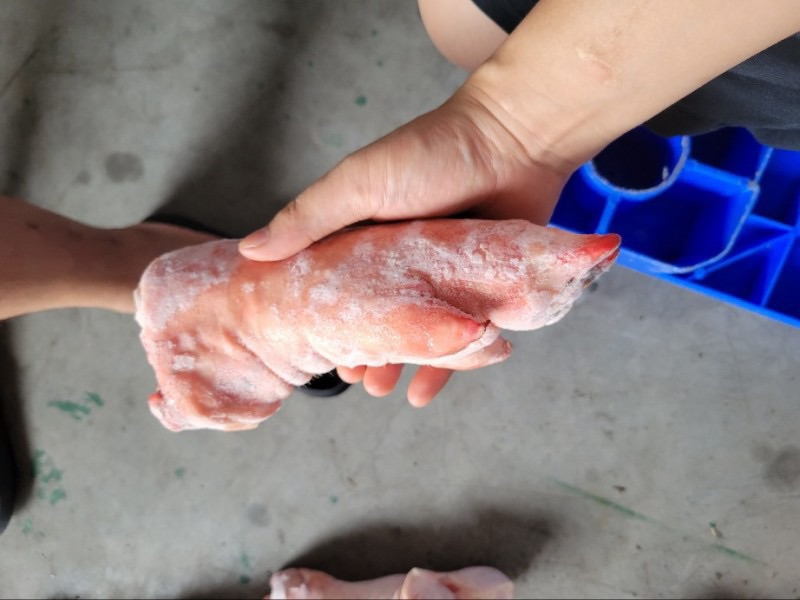 猪蹄,前后混装,去毛9成以上,单个1.2斤左右