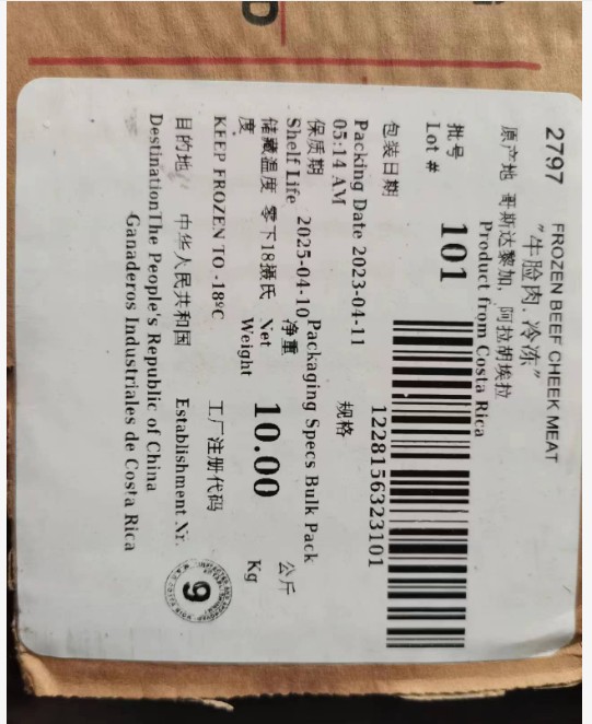 哥斯达黎加9厂牛脸肉,10公斤/箱上海现货