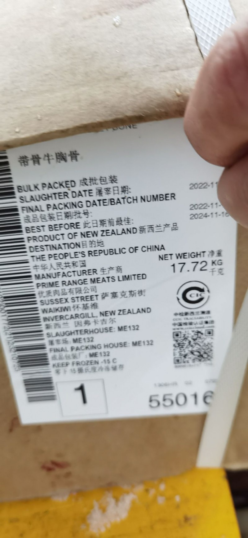 新西兰132厂牛胸骨