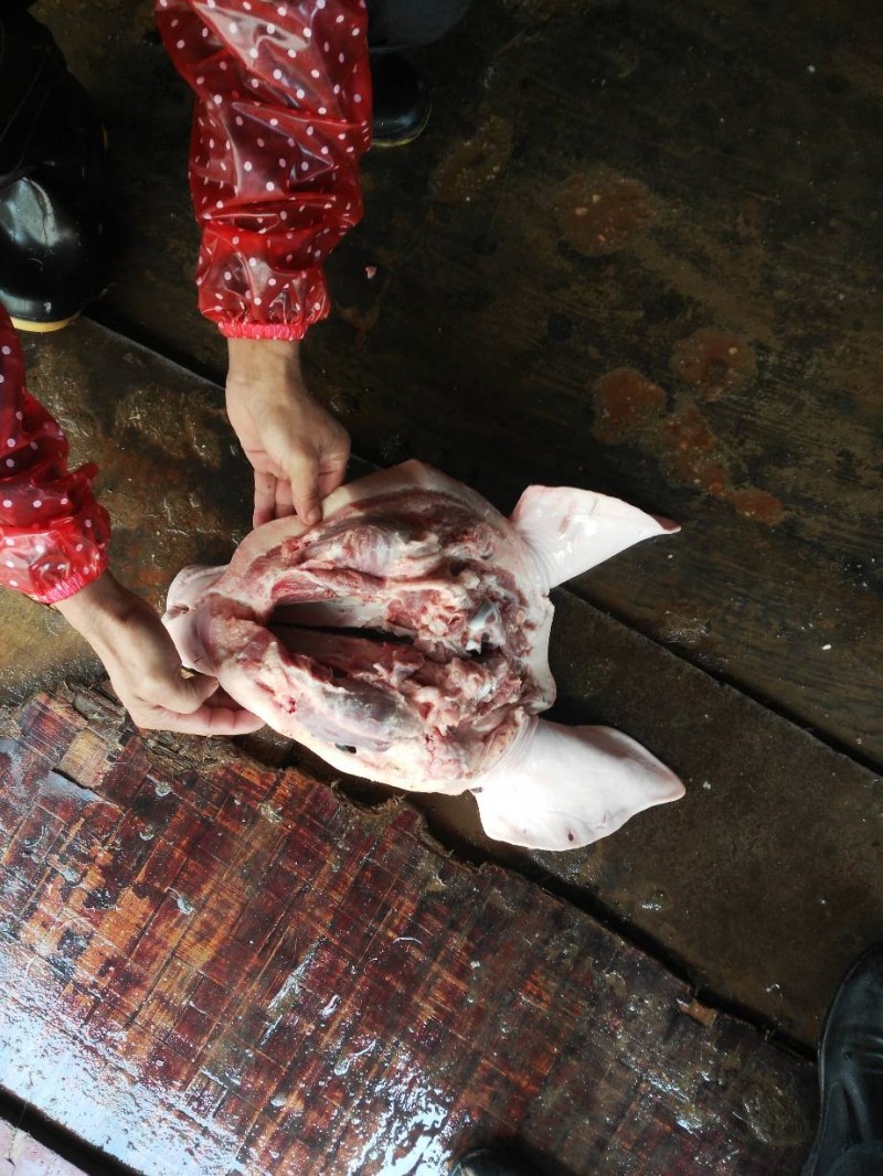 劈开一级带耳猪头。