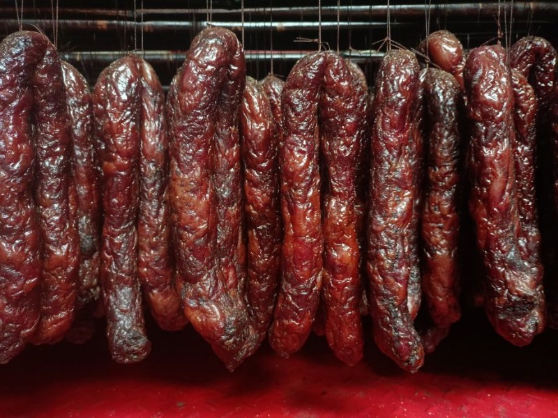 贵州本地腊肉,用材火烟熏。 麻辣香肠 腊猪脚 腊五花 后腿 腊五花