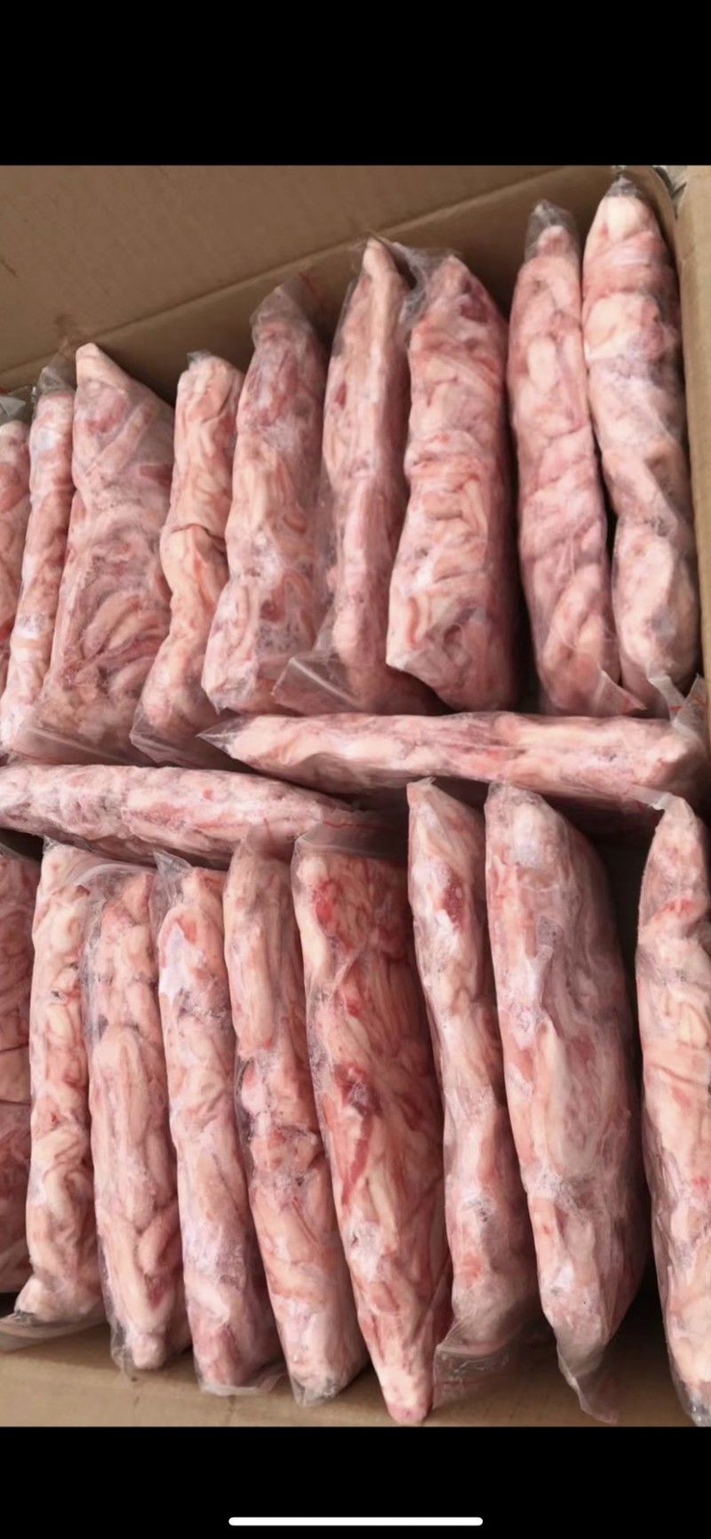 精品鲜冻猪脊髓,颜色漂亮,一斤包,一件20斤。条状、袋装齐全……
