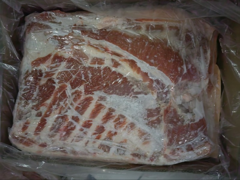 冻猪带皮五花一级,非标准件,编织袋装