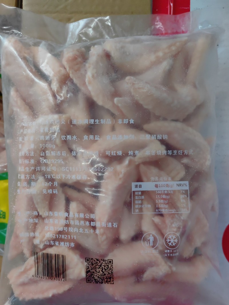 山东省潍坊市荣辉食品有限公司 本公司常年供应鸡副产品,资质齐全,保质保量,可发全国市场。热列欢迎四海宾客来我们基地考察订购,也支持视频看货,愿我们一次合作,终身朋友。荣辉翅尖,多种品质,多种规格,均可定制。 服务宗旨:诚信经营,客户至上。我们本着以质量求生存,以信誉求发展的原则,愿与您携手共赢,共同发展。 物流服务:物流专线,全程冷链。 售后服务:因质量问题,可退可换。 包装规格:10kg、散装。 储存条件:-18度。