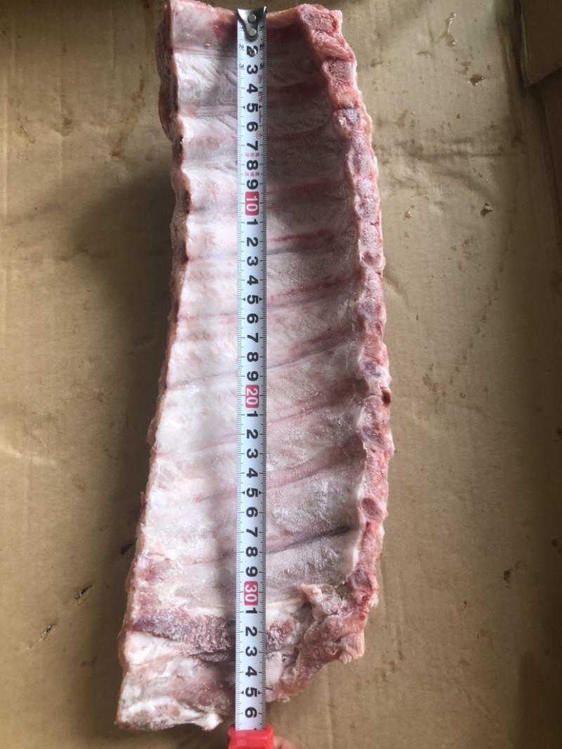 皇冠宽切猪背排一箱子24/25片(20.24公斤)宽度至少11-12cm,排骨至少10根以上,长度在13厘米及以上,带肉率适中,非常适合加工