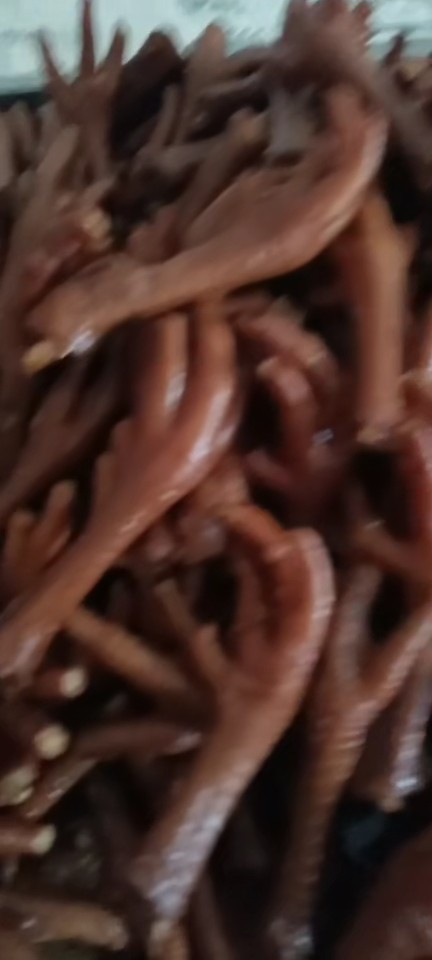 加工风干鸡切下来的鸡爪,3斤左右的老母鸡鸡爪,几百公斤