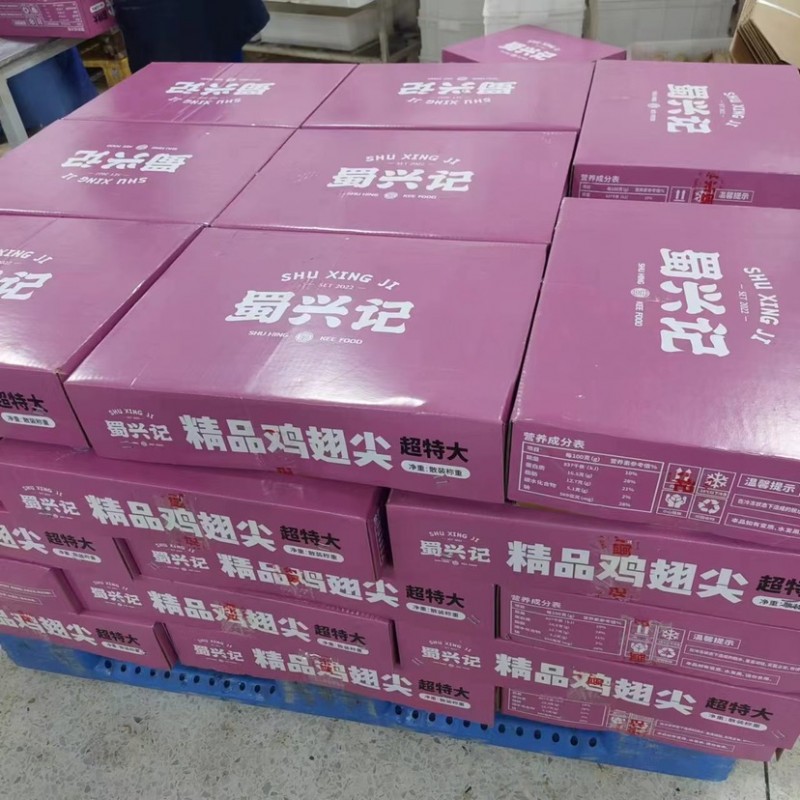 蜀兴记红箱大鸡翅尖,厂家直销!美国翅尖原料,尖大无毛,无泡发,颜色红润,规格20斤一件,解冻18斤左右。