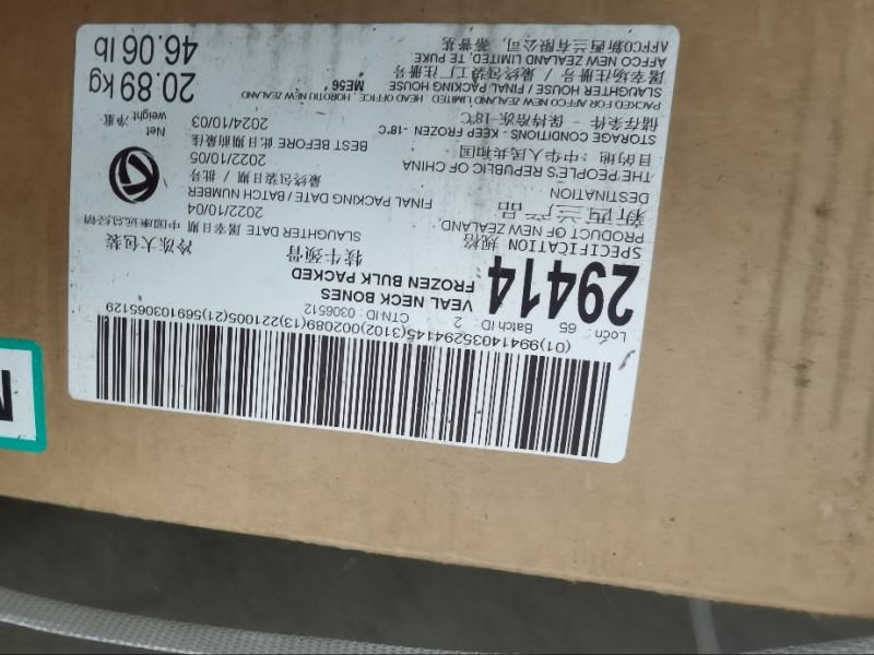 新西兰星牌犊牛脖骨 小牛脖骨 乳牛脖骨