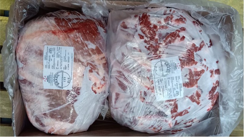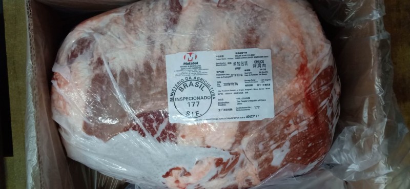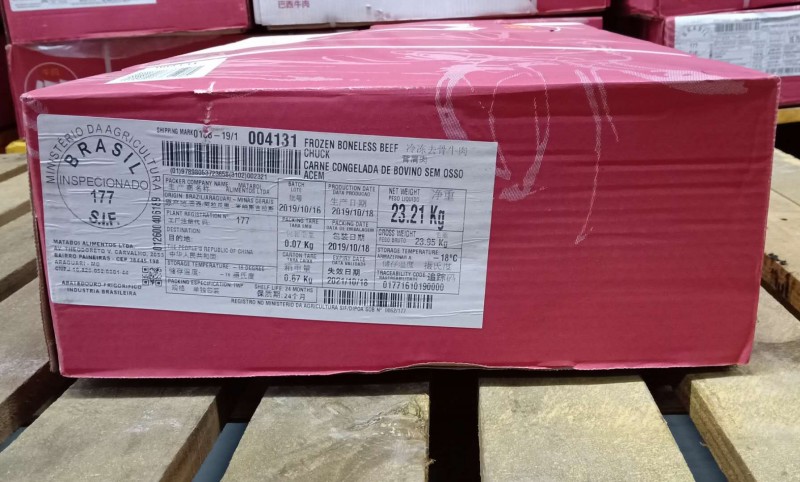 冷冻去骨牛背肩肉 报关单号:224820191000169079 检疫号:119000008999064001 箱重:约25KG 产地:巴西 单块重量:约13.23KG