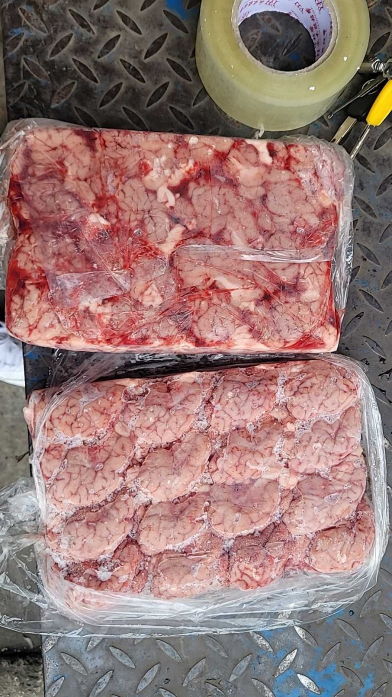 超重脑花,每个在2.3两左右,新鲜屠宰场分割,出厂日期10月份!