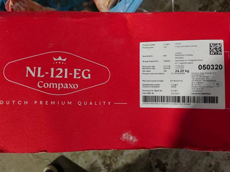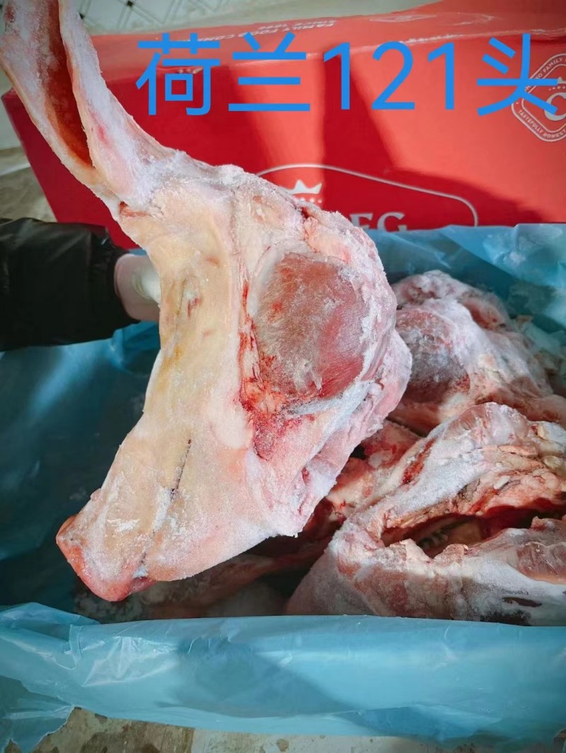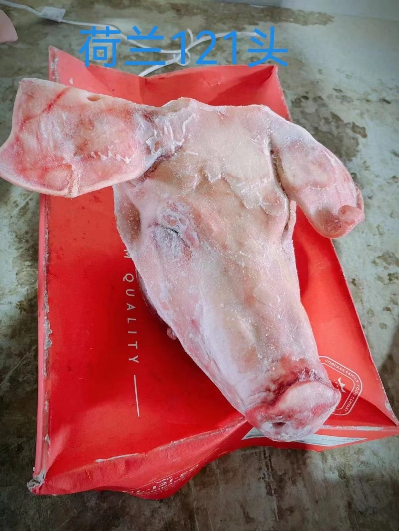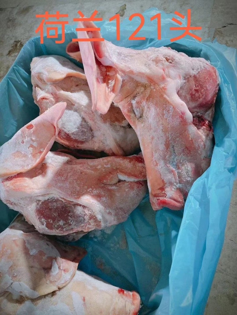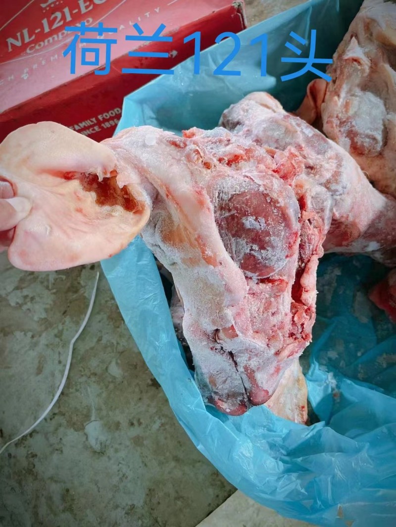 荷兰121带耳去口条头,不肥不瘦,每箱5个,每个头10斤左右。
