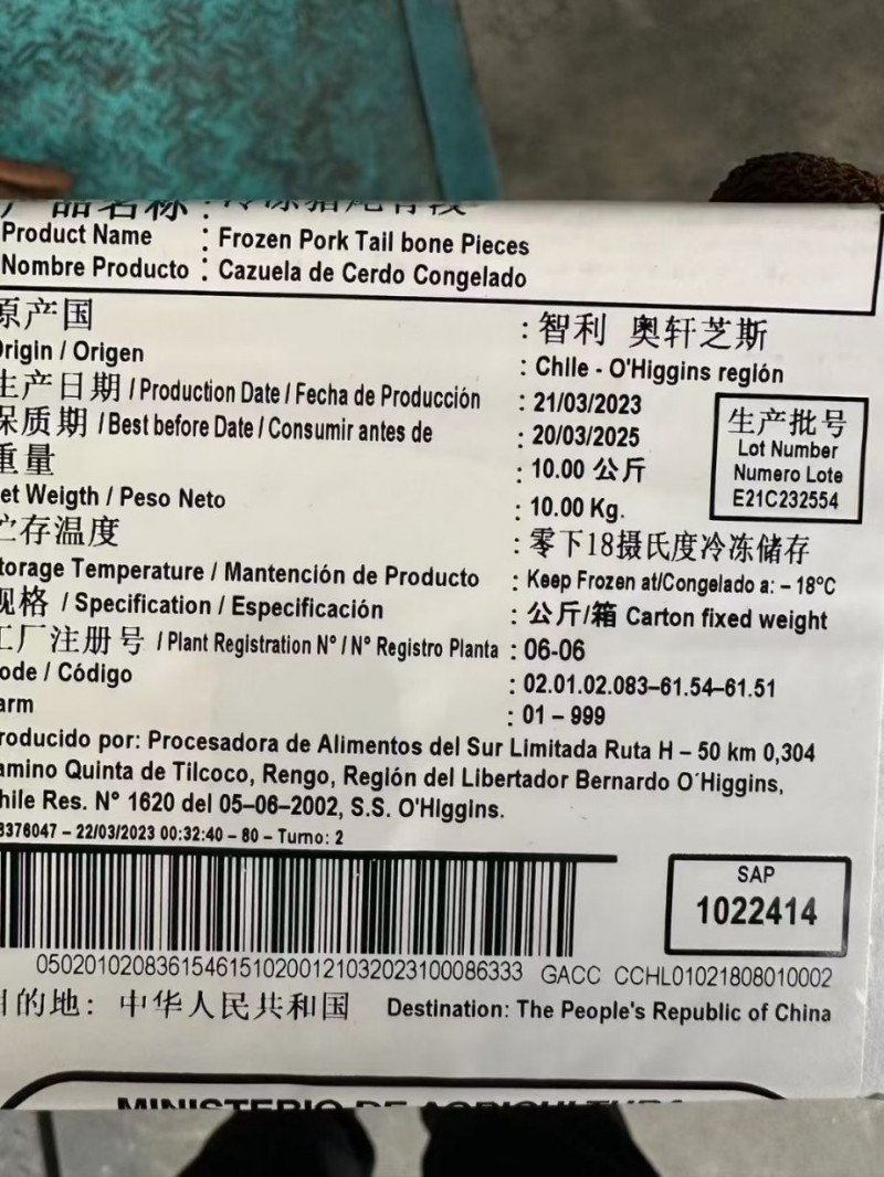 智利0606厂尾骨段,23年3月生产日期,颜色鲜亮嘎嘎好,10公斤定装