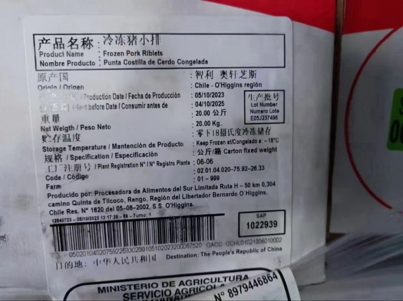 智利0606厂小排,23年10月生产日期,颜色鲜亮嘎嘎好,20公斤定装