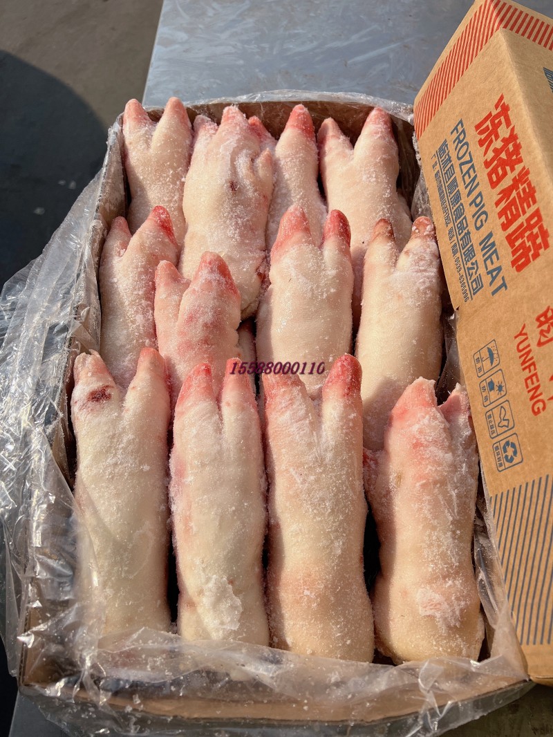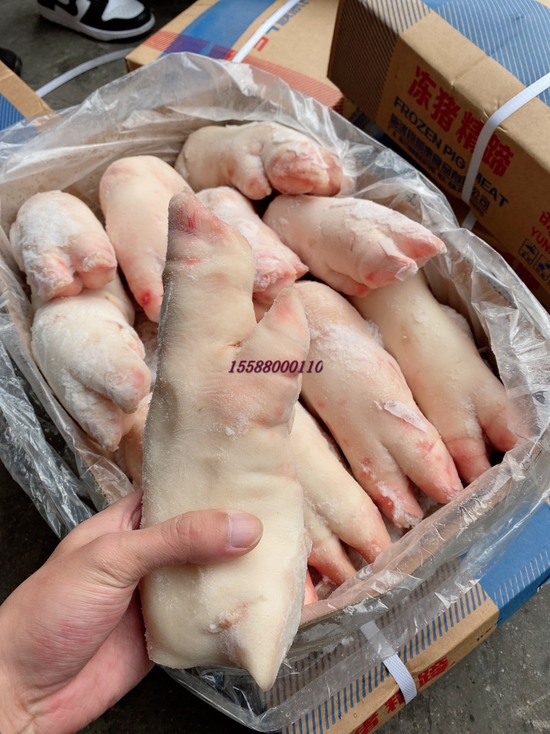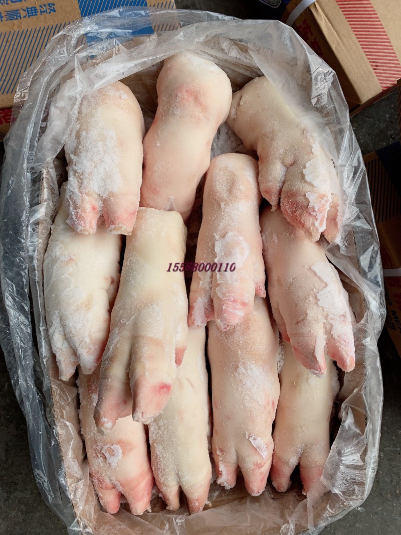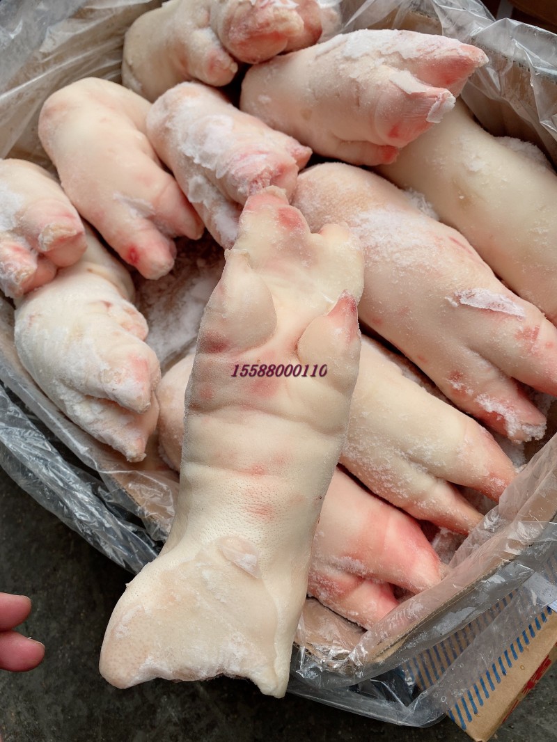 前后混装,10公斤11到13,14到16两种规格,一级蹄毛净度颜色很好。本公司长期屠宰分割猪副产品,精肉系列:1234号精肉,两扒,前驳,腱子肉类。五花系列:前后上五花,带去皮中方,五花卷,三线卷等。各比例碎肉,带去皮槽头 。 油脂类:脊膘,肥膘,碎膘,板油,杂油。 排骨类:肋排,去颈前排,寸排,龙骨,带肉腿骨,前后肘子,颈骨,尾骨,叉骨,扇骨,元宝骨等。半成品类以及副产:去骨七分熟猪头肉,猪精耳,猪脑花,预煮大肠大肠头,猪肚,猪鞭,猪肝,猪心,猪腰,猪舌,猪蹄,花肠,大排片,排骨粒,猪蹄块,肉丝肉片肉丁等产品 诚信经商,义利相济。电话15588000110.