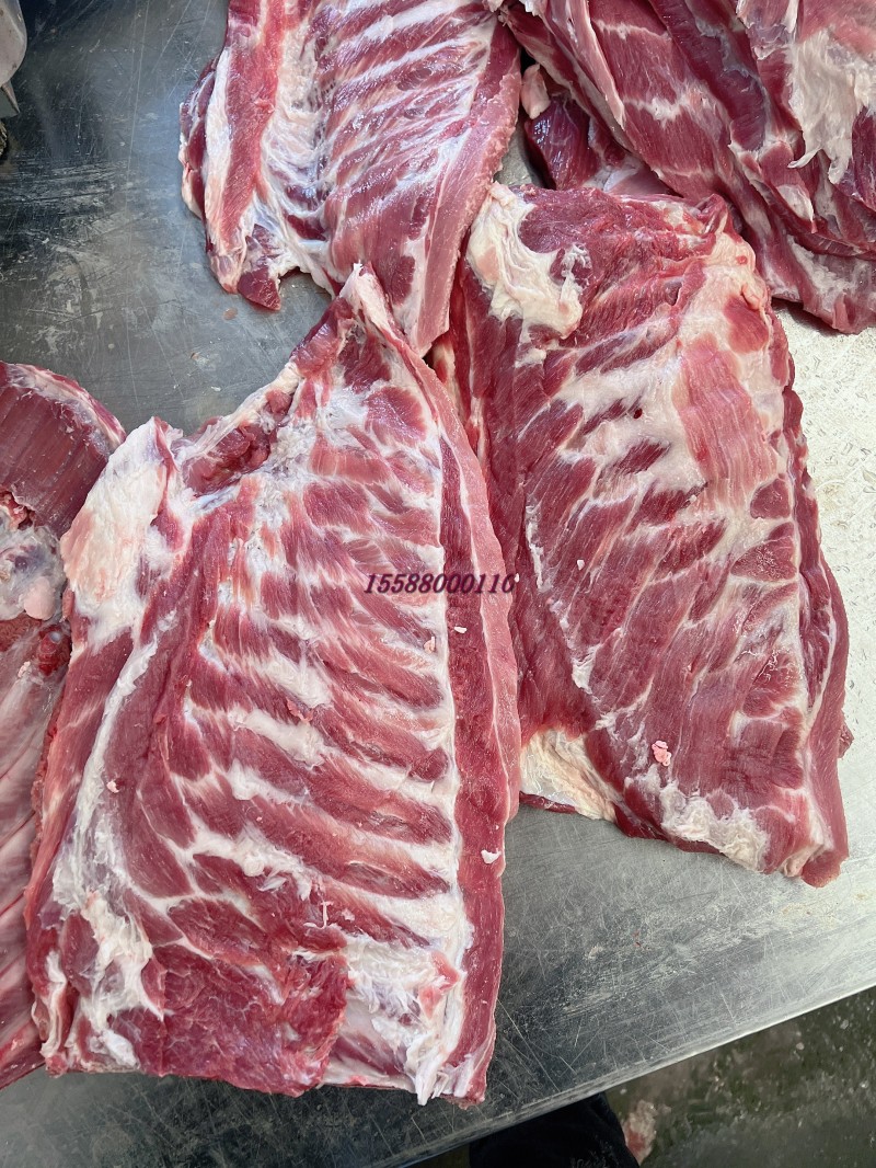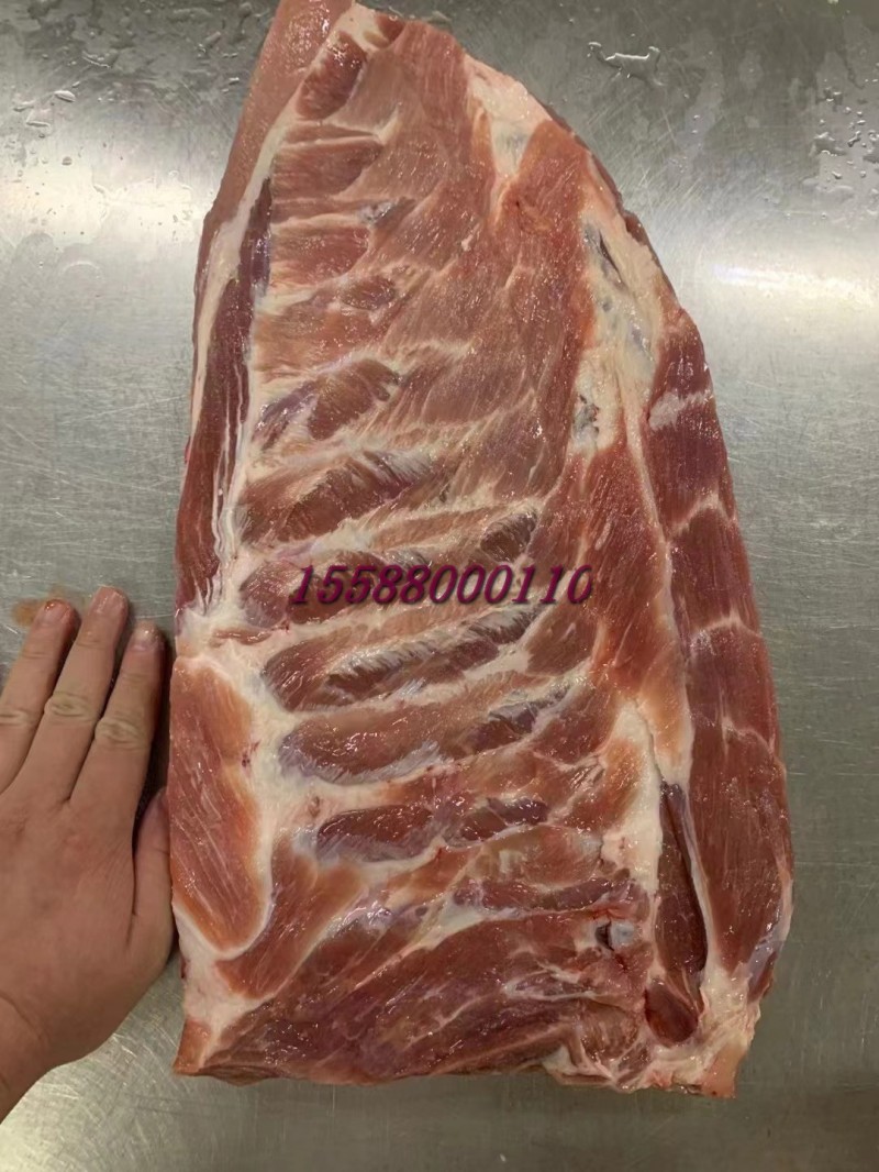 肥猪精修肋排,10公斤4到5片箱装。本公司长期屠宰分割猪副产品,精肉系列:1234号精肉,两扒,前驳,腱子肉类。五花系列:前后上五花,带去皮中方,五花卷,三线卷等。各比例碎肉,带去皮槽头 。 油脂类:脊膘,肥膘,碎膘,板油,杂油。 排骨类:肋排,去颈前排,寸排,龙骨,带肉腿骨,前后肘子,颈骨,尾骨,叉骨,扇骨,元宝骨等。半成品类以及副产:去骨七分熟猪头肉,猪精耳,猪脑花,预煮大肠大肠头,猪肚,猪鞭,猪肝,猪心,猪腰,猪舌,猪蹄,花肠,大排片,排骨粒,猪蹄块,肉丝肉片肉丁等产品 诚信经商,义利相济。电话15588000110.
