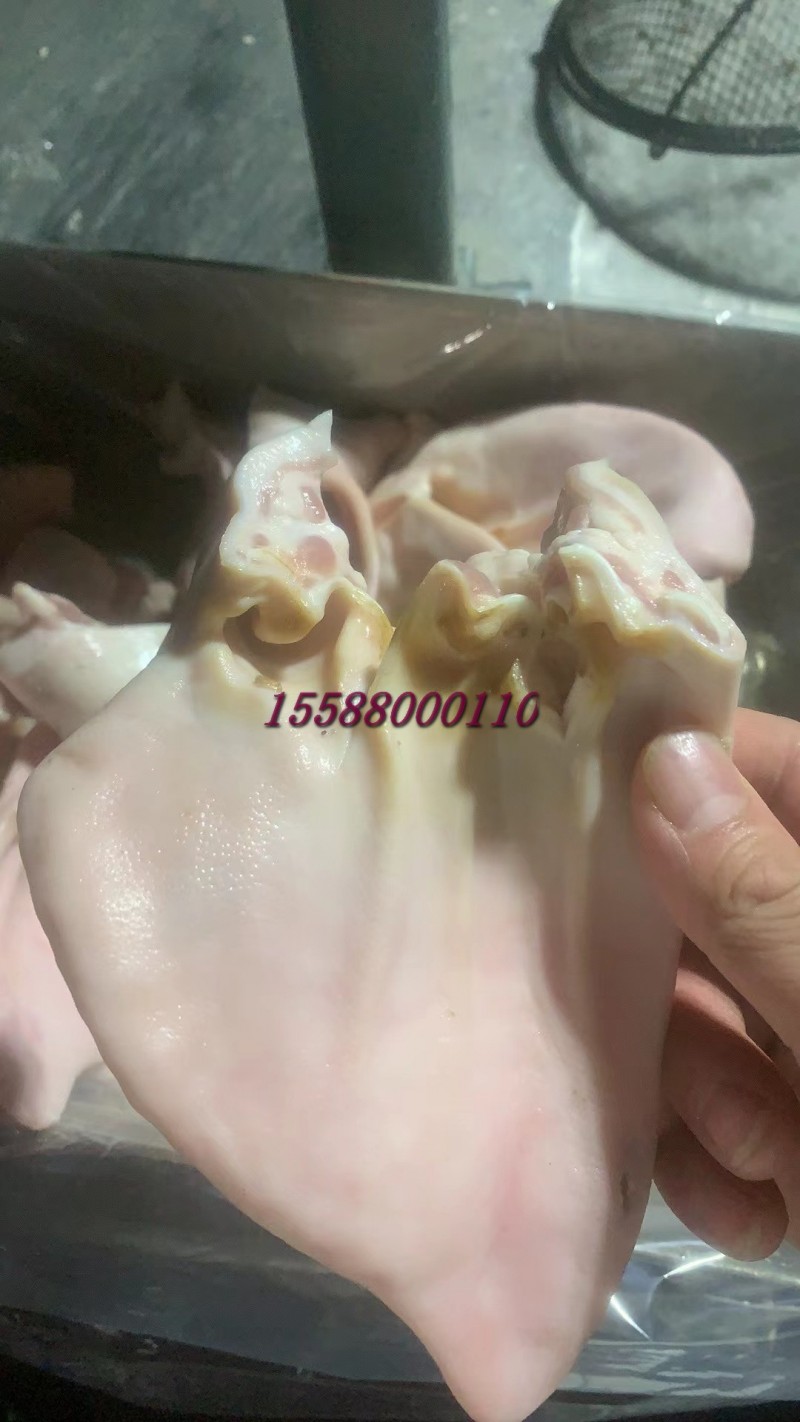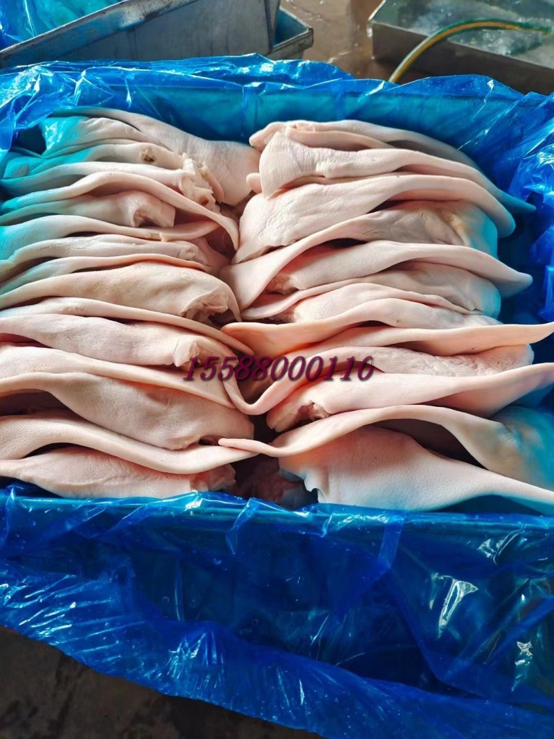肥猪一级小耳朵,耳根2指,10公斤纯干40片左右。本公司长期屠宰分割猪副产品,精肉系列:1234号精肉,两扒,前驳,腱子肉类。五花系列:前后上五花,带去皮中方,五花卷,三线卷等。各比例碎肉,带去皮槽头 。 油脂类:脊膘,肥膘,碎膘,板油,杂油。 排骨类:肋排,去颈前排,寸排,龙骨,带肉腿骨,前后肘子,颈骨,尾骨,叉骨,扇骨,元宝骨等。半成品类以及副产:去骨七分熟猪头肉,猪精耳,猪脑花,预煮大肠大肠头,猪肚,猪鞭,猪肝,猪心,猪腰,猪舌,猪蹄,花肠,大排片,排骨粒,猪蹄块,肉丝肉片肉丁等产品 诚信经商,义利相济。电话15588000110.