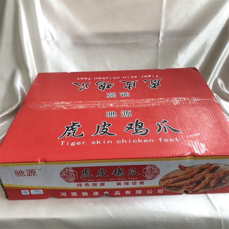驰源虎皮鸡爪 采用40-50型号鸡爪炸制而成,一件2包 一包10斤 一件185个左右 自家加工厂量大可谈,可发样品