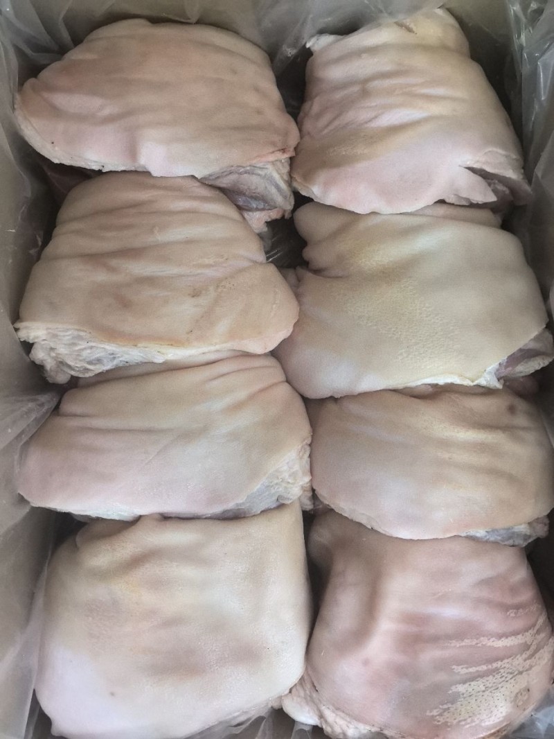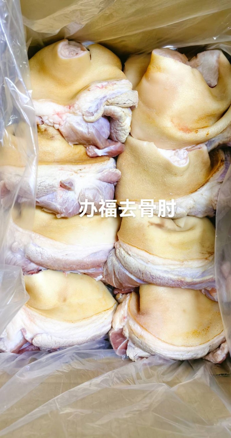 火烧毛去骨后肘,每日鲜品,纯干不泡水,大厂直供,头头检疫,安全有保障,火烧刀刮,干净无毛,一箱6-7-8-9-10-11-12个头,只做标猪肥猪,客户吃的更健康,日产5吨,现货20吨+,量大价格低