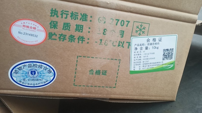 牧原舌根肉,原始检疫票