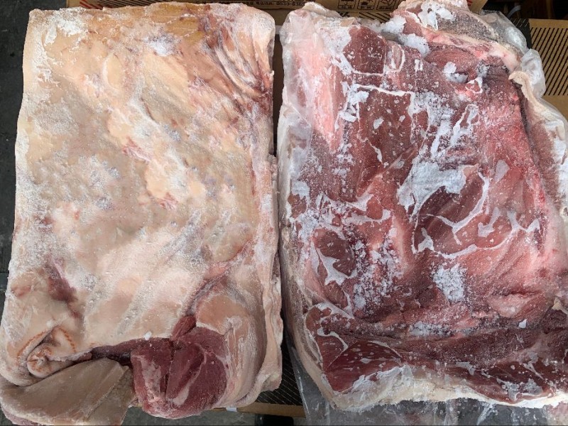 进口分割肥猪带皮前五花,支持检疫发票 规格:10公斤净重箱装,2片添称。