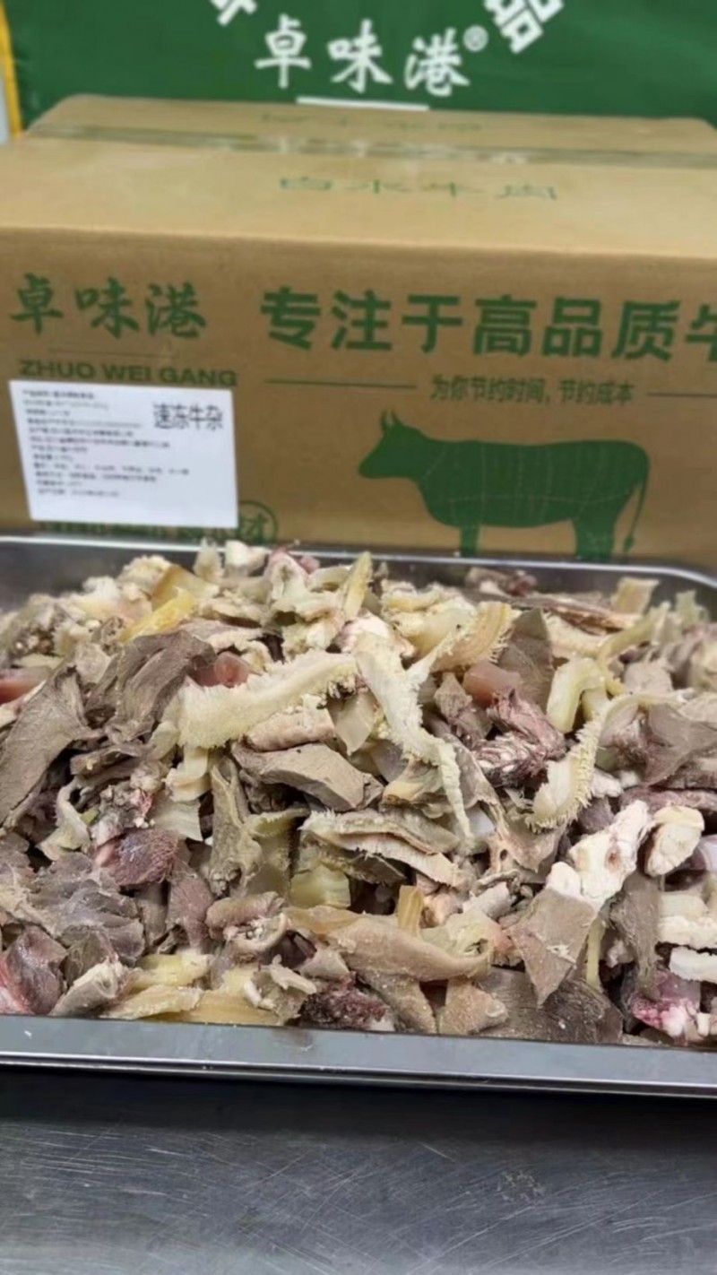 精品牛杂包含,牛肚,牛心,牛头肉,牛耳丝,牛肉筋,牛小肠,不包含肝肺。牛杂比例是1:1比例。