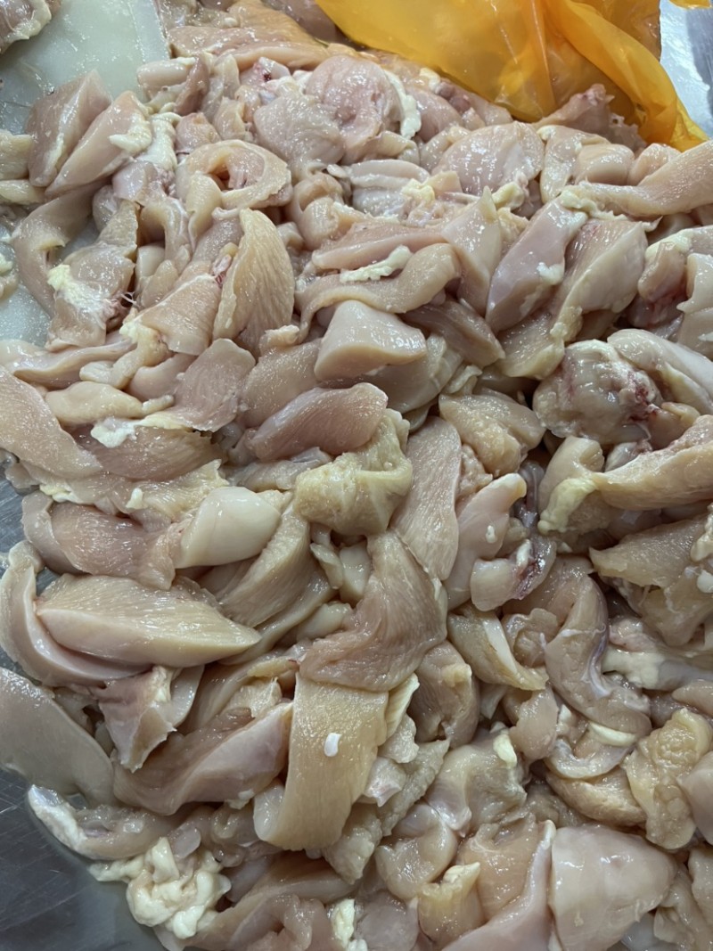 自己工厂切下来的胸肉块。