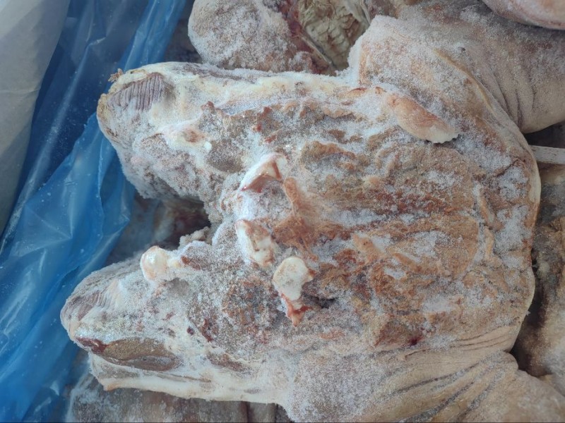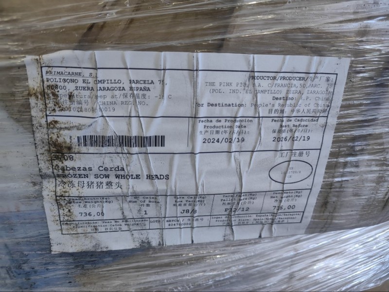 西班牙709母猪头,干净无毛,一箱700公斤左右,新货,23吨,日期24.02.19,潍坊提
