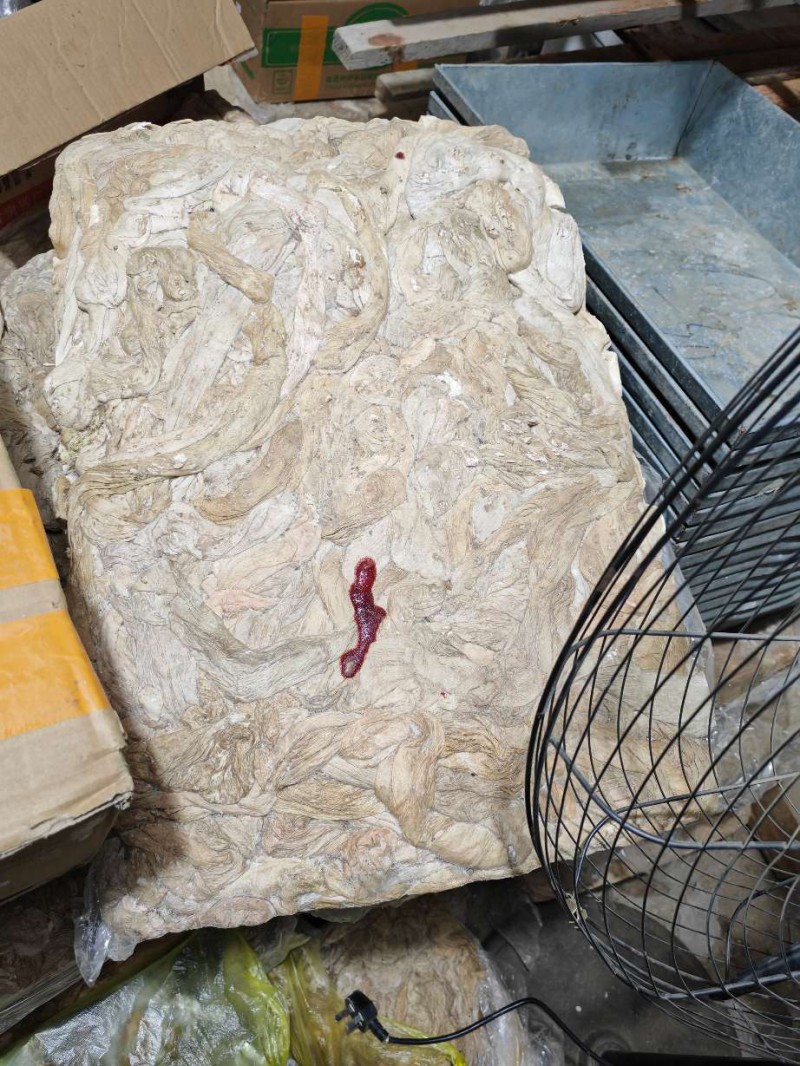 加工羊拐肠的时候挑出来颜色不好的,加工成板了。全部板状。