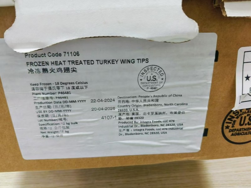 已售罄 #重庆华桢出售: 美国46481熟火鸡翅尖(71106),12千克/件,克重70-100为主,均重80克左右; 正关货源、低失水高产出、稳供应降成本、13%税点抵扣。 适用于食品加工厂、市场批发零售和餐饮终端卤菜等,是制作卤制火鸡翅尖的上佳原料。