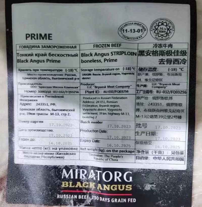 俄罗斯32厂谷饲黑安格斯极佳西冷,上海现货,价格实惠,欢迎来谈