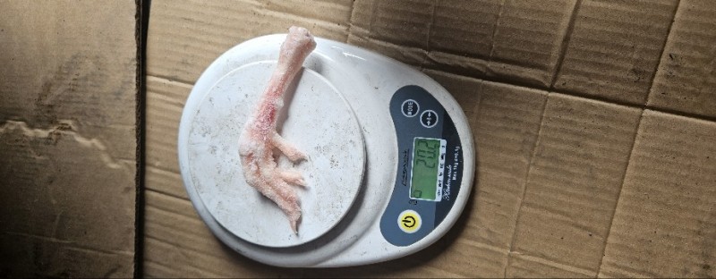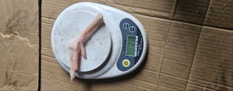 青年蛋鸡爪300多天,均重22克,